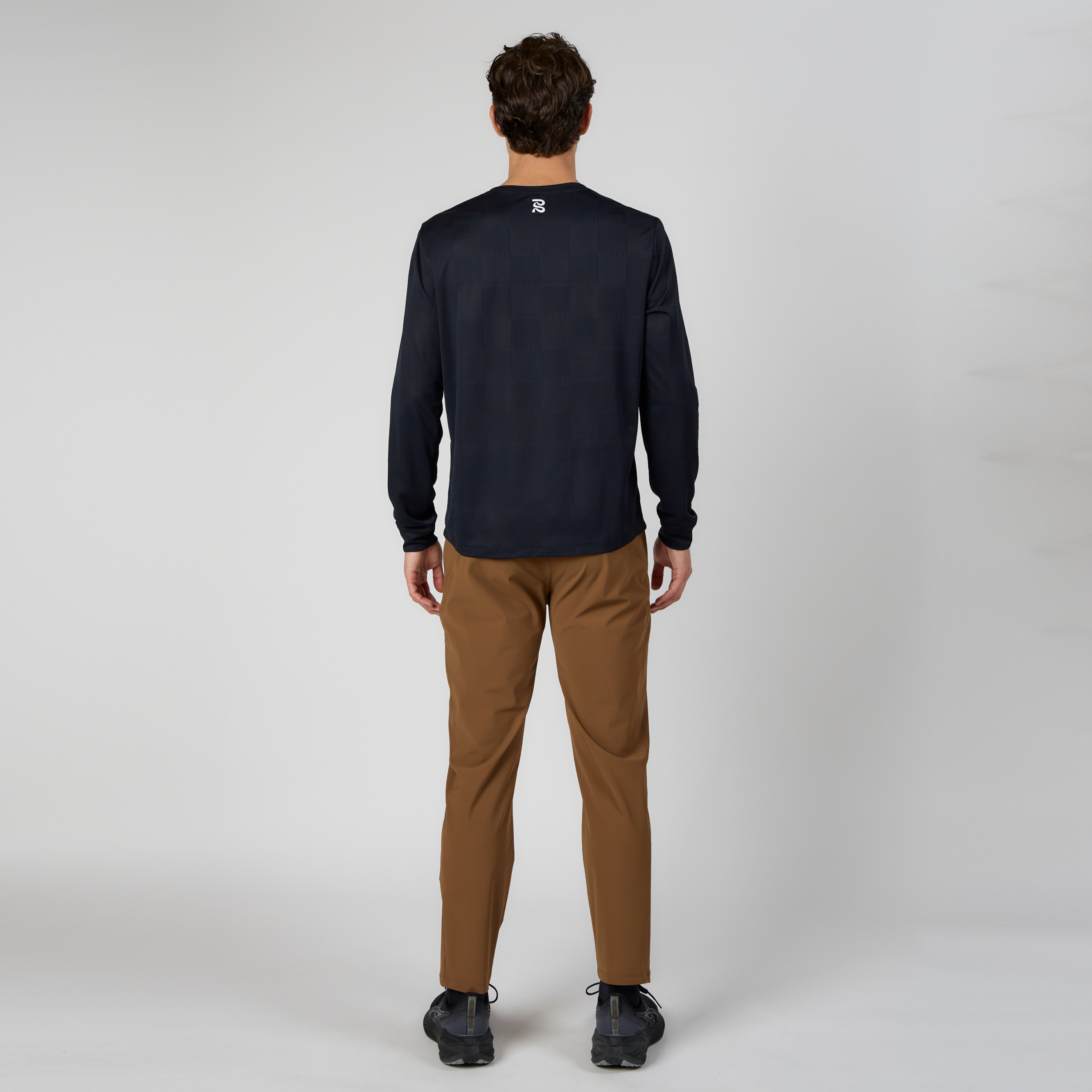 A clean, minimal take on a classic jogger pant, cut in a 4-way stretch Italian fabric. This slim tapered silhouette is perfect to wear on its own or over your shorts on the chillier spring days. Signature exposed elastic waistband and branded drawstring finished with contrast Taxi bartacks. Front zipper pockets, along with a third back zipper pocket, ensure secure storage for any training run, on the track or to the grocery store. Zipper detail on hem adds an additional layer of functionality.