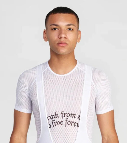 Our mesh baselayer supports you on hot summer days and through life eternal in this blackletter edition inspired by vampire cinema. The open-mesh weave breathes while providing protection from the elements.