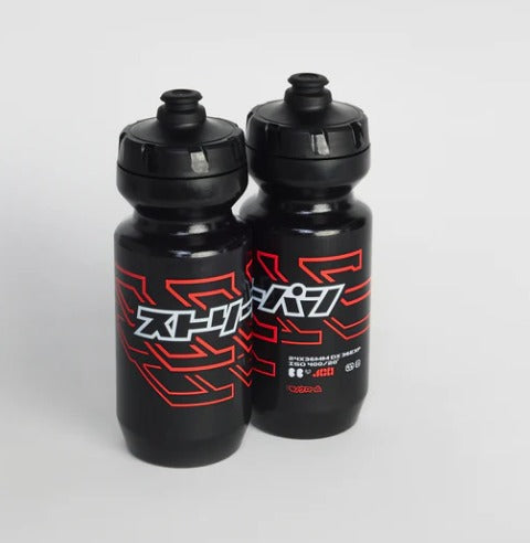 A pair of bottles in a film canister design for 72 frames of fun. These are industry favorites produced by Specialized with BPA-free plastic that lasts without lingering tastes. The red and white Streetpan graphic wraps around each bottle and has the pixel canister label on front.
