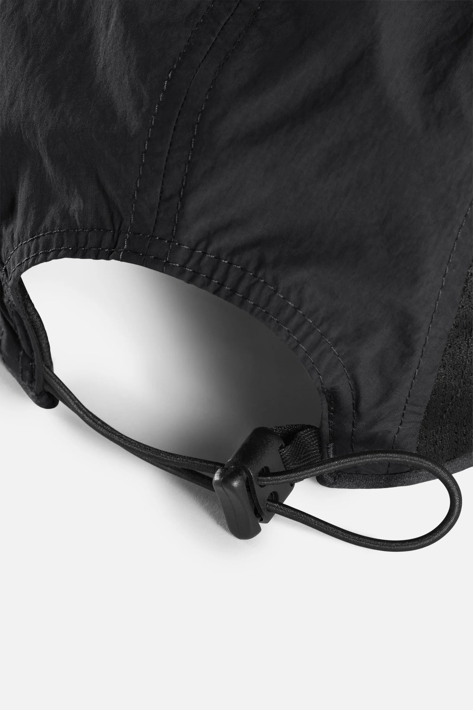The performance paneled mesh hat is constructed from our recycled and water-resistant single-layer shell fabric. The cap features a soft featherweight honeycomb mesh for breathability, and sports a 3-inch brim, providing ample shade in sunny conditions. An internal sweat sweatband adds structure and wicks moisture, and a lightweight shock cord loop is paired with a quick release sports clasp to provide quick adjustability.