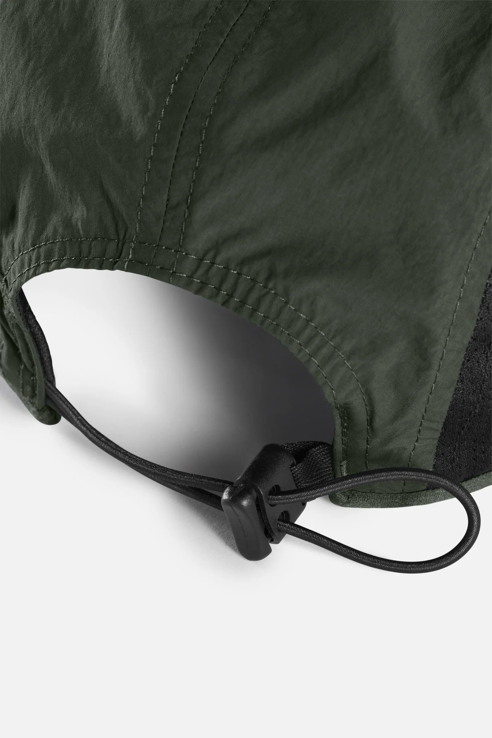 The performance paneled mesh hat is constructed from our recycled and water-resistant single-layer shell fabric. The cap features a soft featherweight honeycomb mesh for breathability, and sports a 3-inch brim, providing ample shade in sunny conditions. An internal sweat sweatband adds structure and wicks moisture, and a lightweight shock cord loop is paired with a quick release sports clasp to provide quick adjustability.