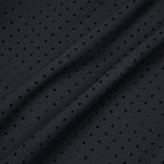 Our micro jersey fabric is knitted and perforated in Italy. It naturally stretches in every direction following the body's movements while staying breathable. It's created using a laser microperforation technique called punch-out, which removes portions of fabric leaving micro-holes. This allows greater breathability and lighter weight while also providing an easy way to attach your number on race day.