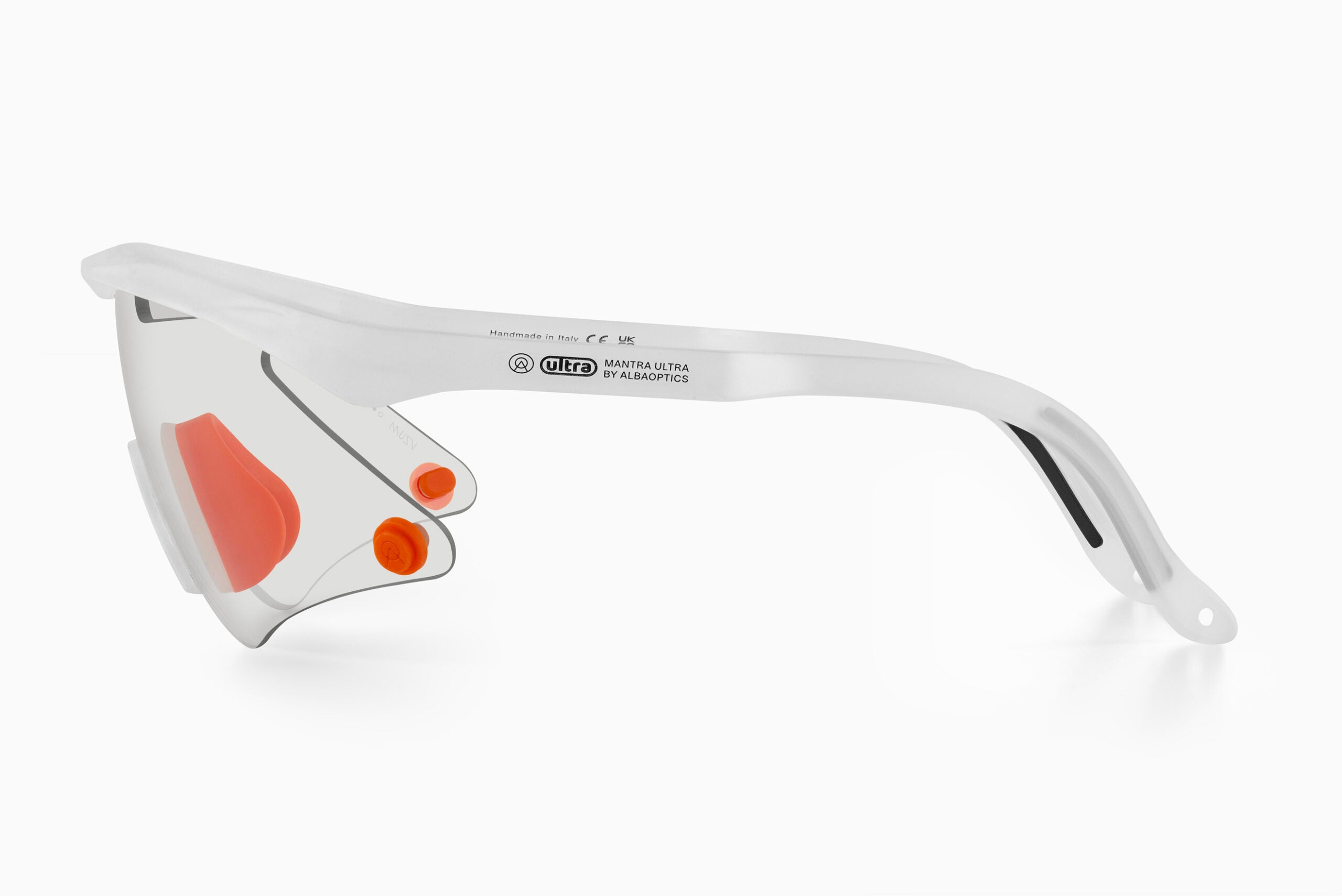 The interchangeable VZUM™ F-LENS U-LENS is 10% smaller than the traditional MANTRA lens. An elegant tapered spherical lens with decorative rubber logo buttons and nosepad in ORANGE.