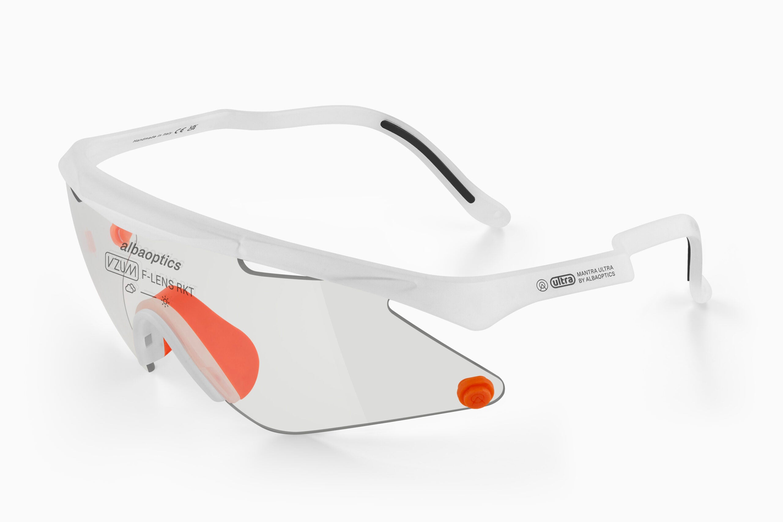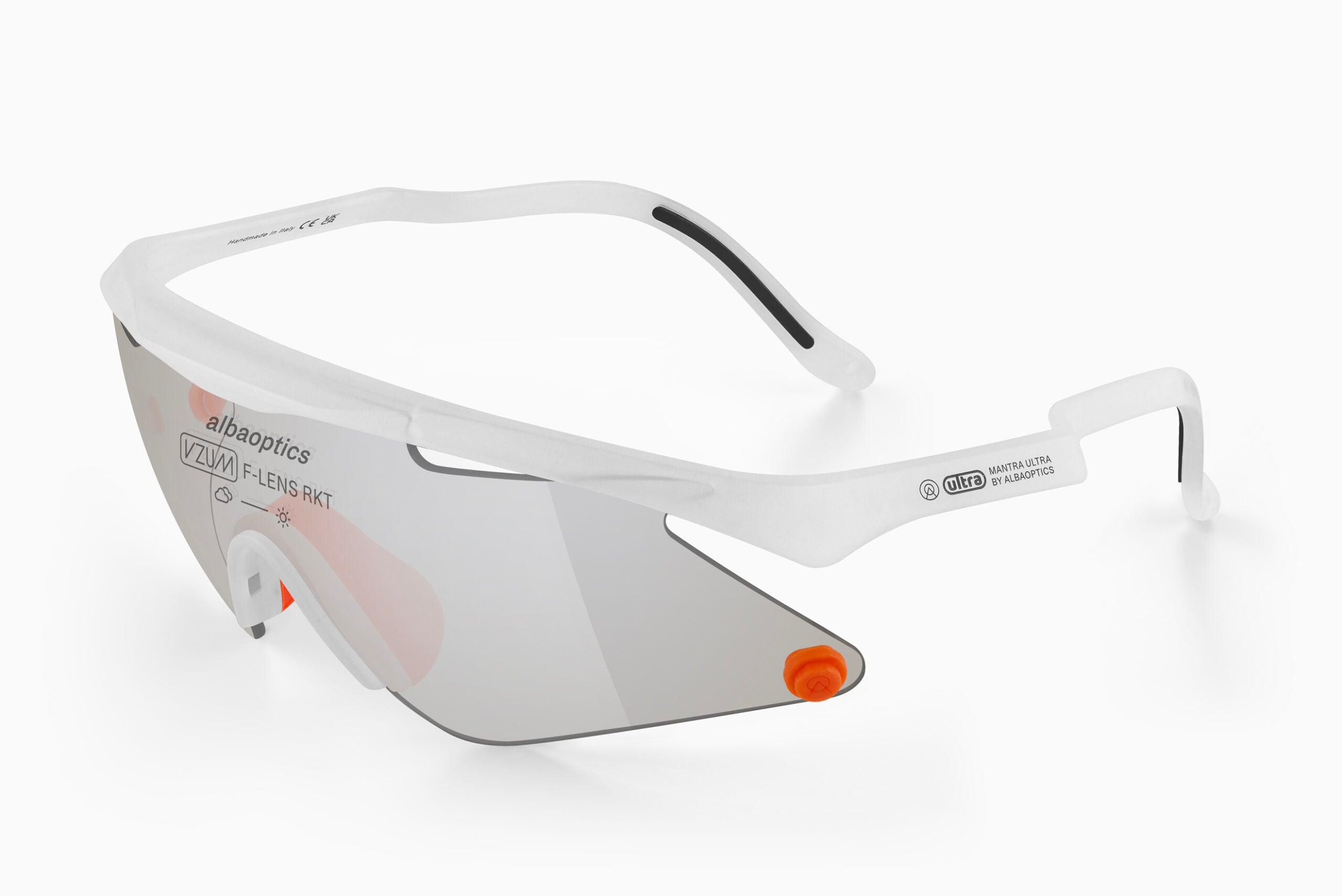 The ULTRA collection includes two versions of the MANTRA frames: BLK and WHT with VZUM™ F-LENS RKT ULTRA