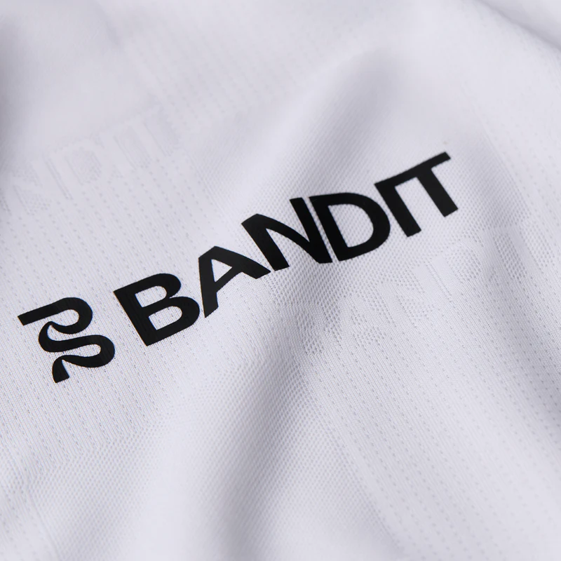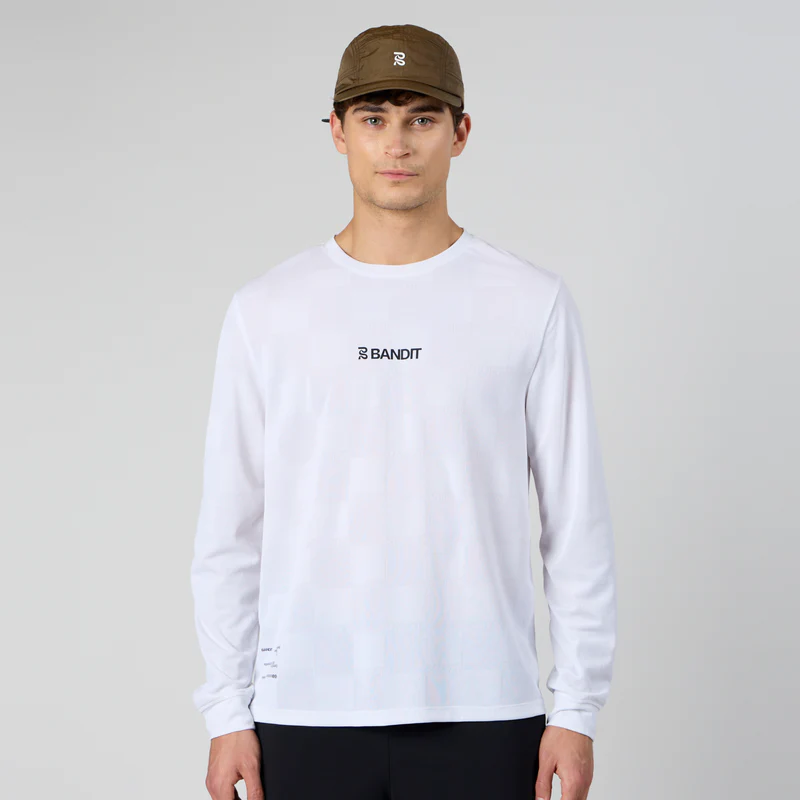 Our signature performance long sleeve in our new 100% recycled, custom-knitted, jacquard fabric. The subtle knitted "Bandit" wordmark provides a micro texture that reduces sticking and supports breathability.