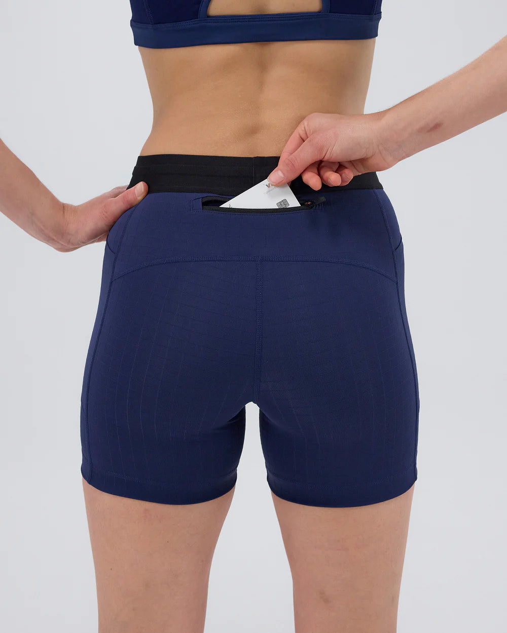 Crafted in our lightweight, yet compressive signature Gridlock™ performance fabric, the 5" compression bottoms have no front rise seam and are complete with 3 phone sized pockets (1 zipper). Finished with Italian grip tape at the hem to prevent ride-up, our custom anti-chafing waistband, and subtle silicone logo detailing.