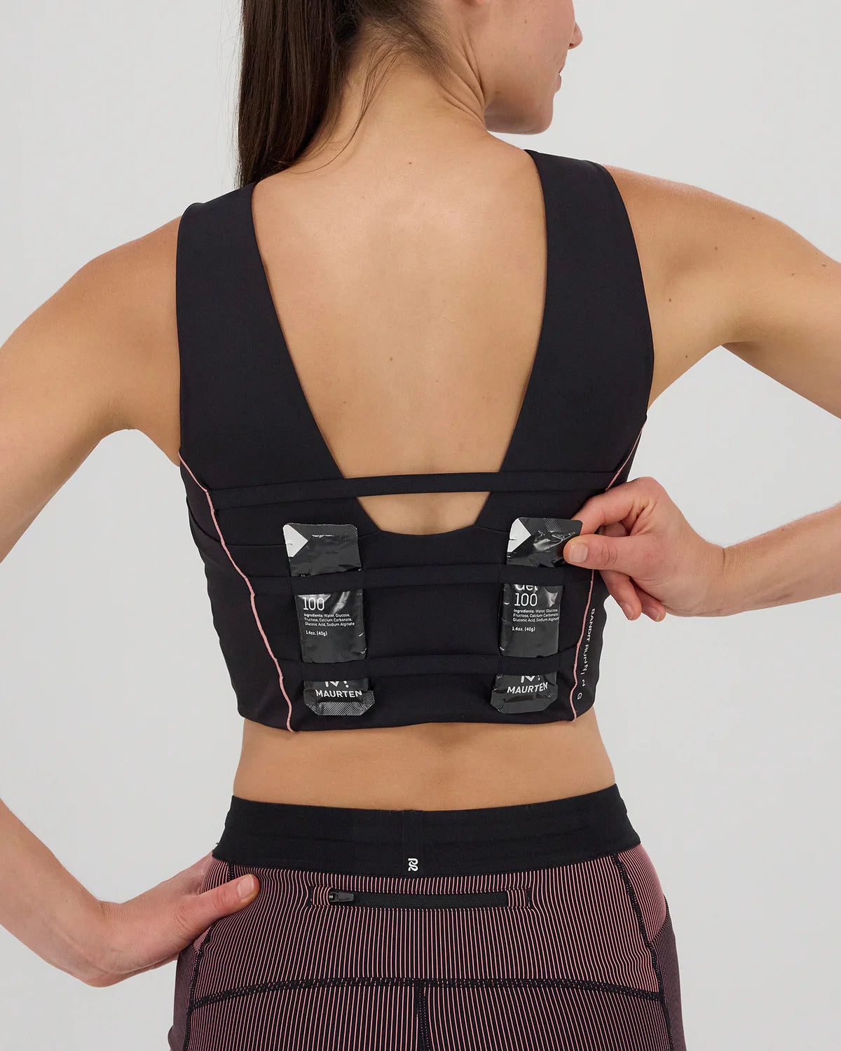 Multiple pockets, zero telling. Sweat-proof phone and gel-sized pockets all designed to disappear when you run.