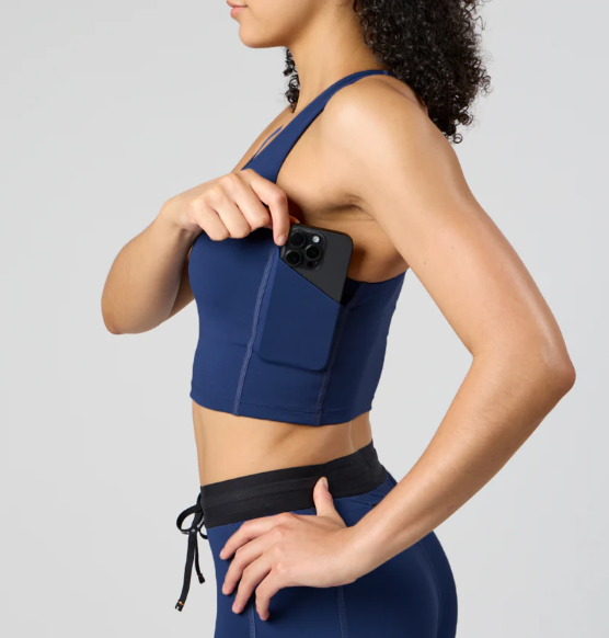 Our classic racing crop fit and scoop neckline updated with a shelf bra for a faster and lighter feel. Details include our signature racer back & phone pocket, as well as side panels designed for gels and an iPhone-ready pocket. Made in our signature Stamina™ fabric that moves with you, while keeping you cool and supported.