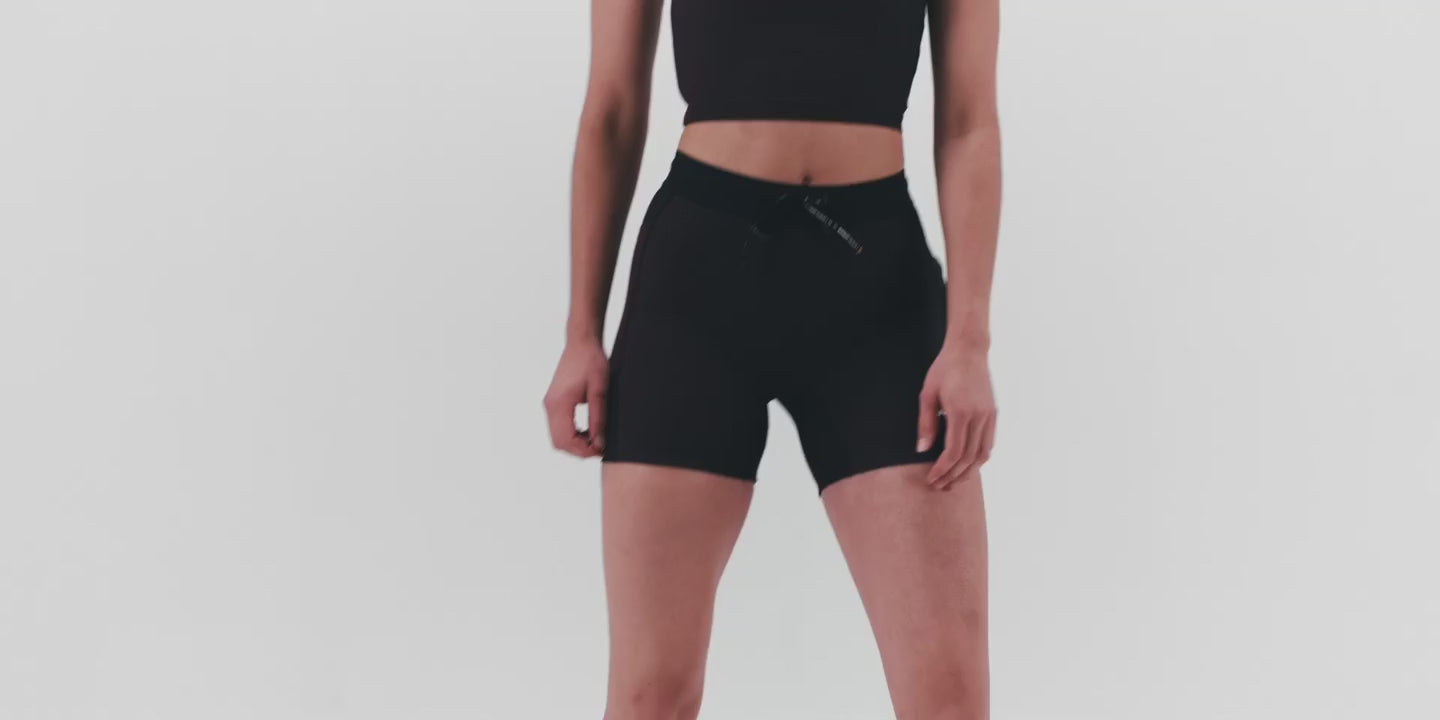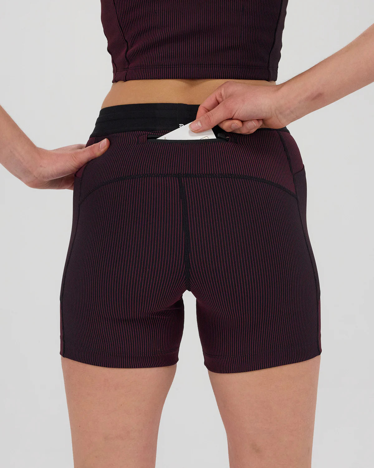 Crafted in our ultra comfortable Striped Cadence™ performance fabric, the 5" compression bottoms have no front rise seam and are complete with 2 waterproof phone pockets on the sides and 1 zipper stash pocket at the center-back. Finished with Italian grip tape at the hem to prevent ride-up, our custom anti-chafing waistband, and subtle silicone logo detailing.