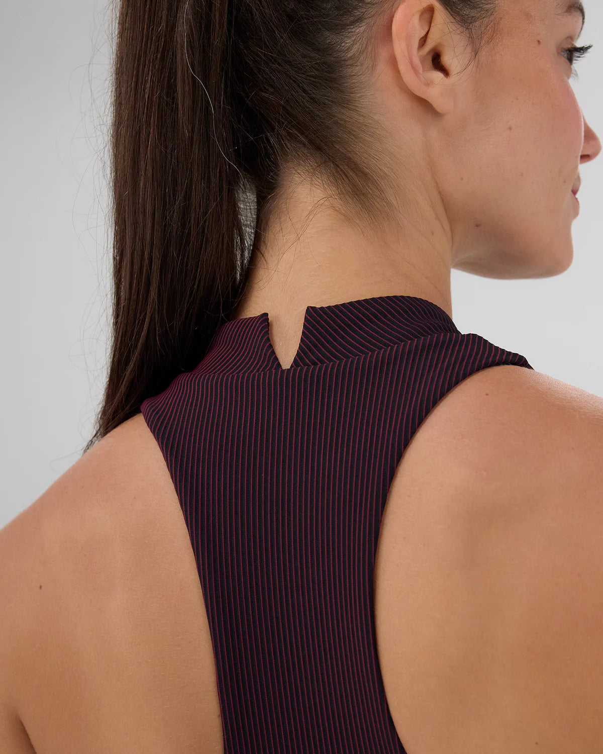 Introducing our Vaso Race Crop, cut in signature Striped Cadence™ fabric. Constructed with a built in bra for a supportive, medium impact fit. The subtle mock neckline and sleek seaming give an elevated aesthetic, while not leaving performance behind. This silhouette is constructed with our Time Magazine Award Winning 4 gel pocketing system at back body, gel pockets at sides, and phone pocket with waterproof liner at center back. Silicone branded patch at center front.