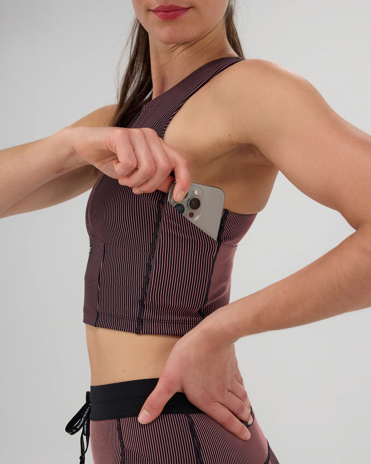Bandit | Striped Cadence™ Zip Front Race Crop - Black with Mauve