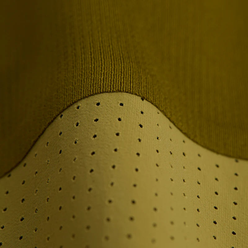 This ultra-lightweight performance fabric combines exceptional breathability and moisture-wicking properties with ultra-fine yarns for a chafe-free, comfortable experience during intense physical activity. Its sophisticated jacquard knit construction features a micro-textured reverse side that enhances airflow and minimizes skin contact, reducing discomfort and chafing. The fabric incorporates mechanical stretch, achieving flexibility and freedom of movement without the need for spandex, optimizing performance while keeping the fabric lightweight. This innovative design approach ensures the fabric's functionality in maintaining comfort and enhancing performance without adding bulk.