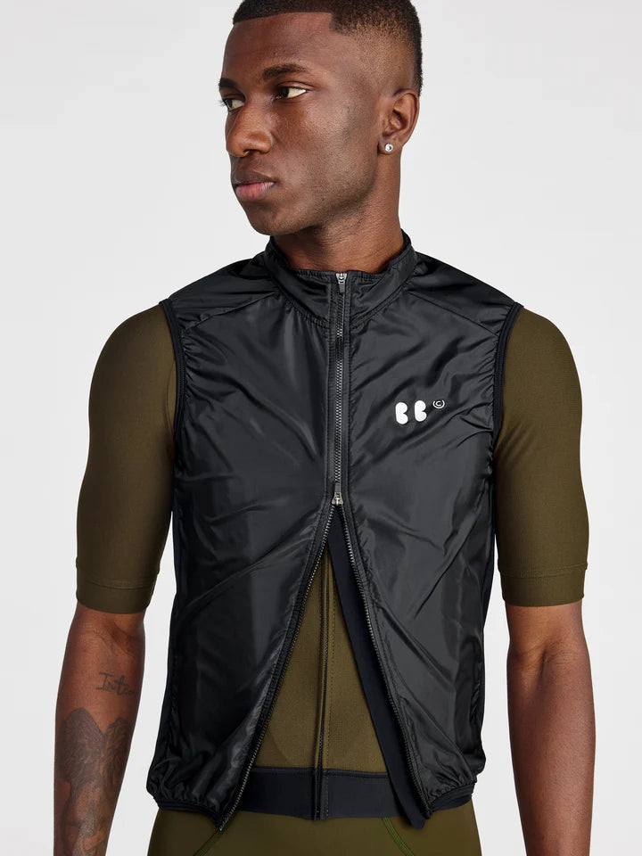 Dance Mesh Gilet BlackDesigned as a protective layer that hides in a pocket, our Dance Mesh Gilet is a versatile piece for extra warmth on the descent home. A high collar and solid front panel protect from windchill while the mesh back allows sweat to breathe. Features a tight cut designed for size-symmetry with our Everyday jersey, but personally we recommend sizing down if you prefer less flapping in the wind.
