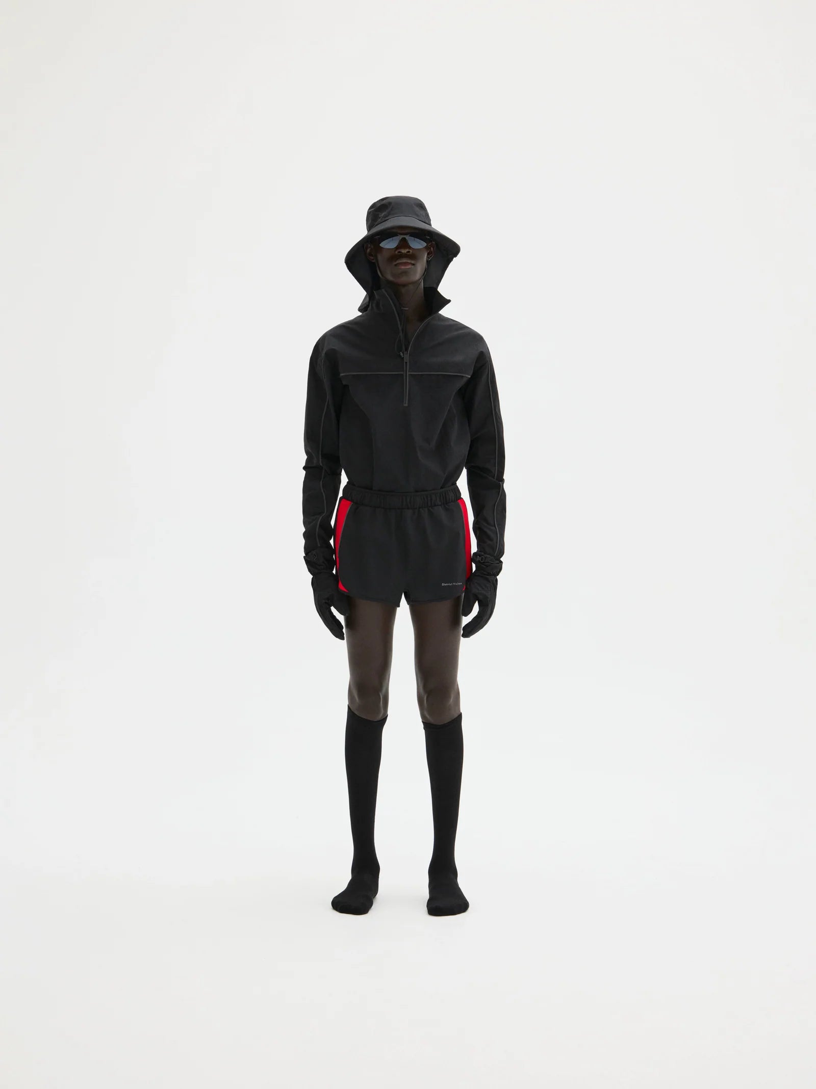 The 2" Paneled Training Shorts are unlined, providing maximum range of motion and customizable layering options. The shorts feature a secure rear zip pocket with decorative V bartacking, an integrated waistband construction, and substantial Japanese woven drawcords for an adjustable fit. The side contrast panels with reflective piping provide increased visibility.
