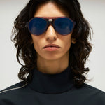 Developed especially for this collaboration, D+ Blue Ice is a non-polarized lens with a subtle blue mirror coating on the exterior of the lens. D+ Blue Ice allows 23.56% of visible light transmission, 21.03% of blue light transmission, and blocks 100% of UVA/UVB rays.