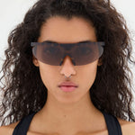 Koharu Eclipse is a six base frame construction defining a new approach to unisex sports eyewear. The ergonomic form is engineered to aid ventilation and enhance the field of vision. The 125mm temples are architected for helmet use. The frame features D+ lens technology, an adjustable hypoallergenic rubber nose pad and temple tips with a titanium core. D+ Copper mitigates reflected light and allows 10.03% of visible light transmission, 6.06% of blue light transmission, and blocks 100% of UVA/UVB rays.