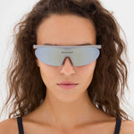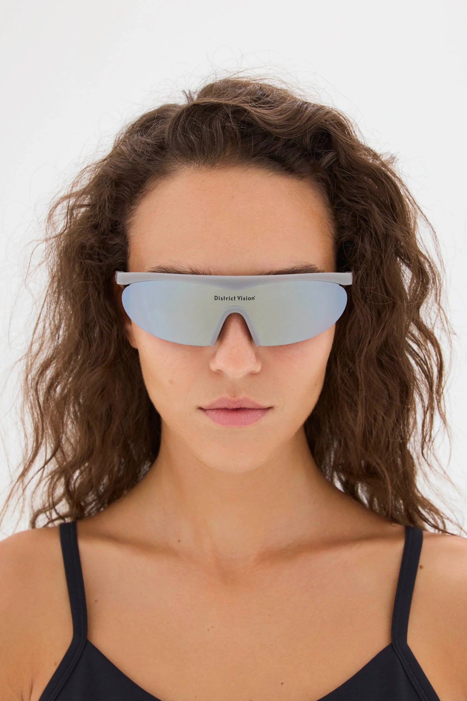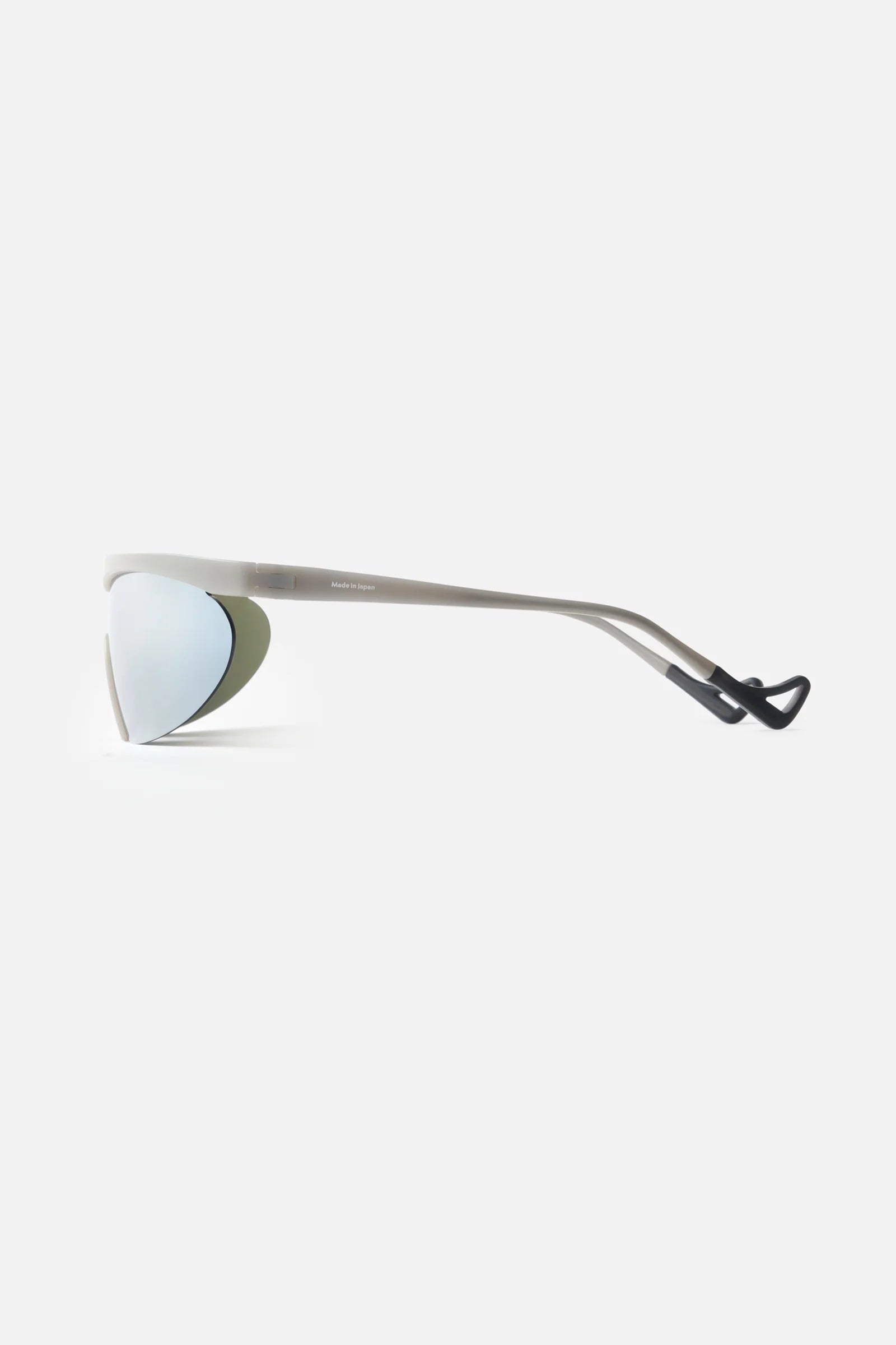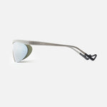 Koharu Eclipse is a six base frame construction defining a new approach to unisex sports eyewear. The ergonomic form is engineered to aid ventilation and enhance the field of vision. The 125mm temples are architected for helmet use. The frame features D+ lens technology, an adjustable hypoallergenic rubber nose pad and temple tips with a titanium core. D+ Silver Flash was developed for physical pursuits requiring maximum sun protection. The mirror coating facilitates additional infrared screening. The lens offers 100% UVA/B protection while transmitting 10.29% of visible light and 9.70% of blue light.