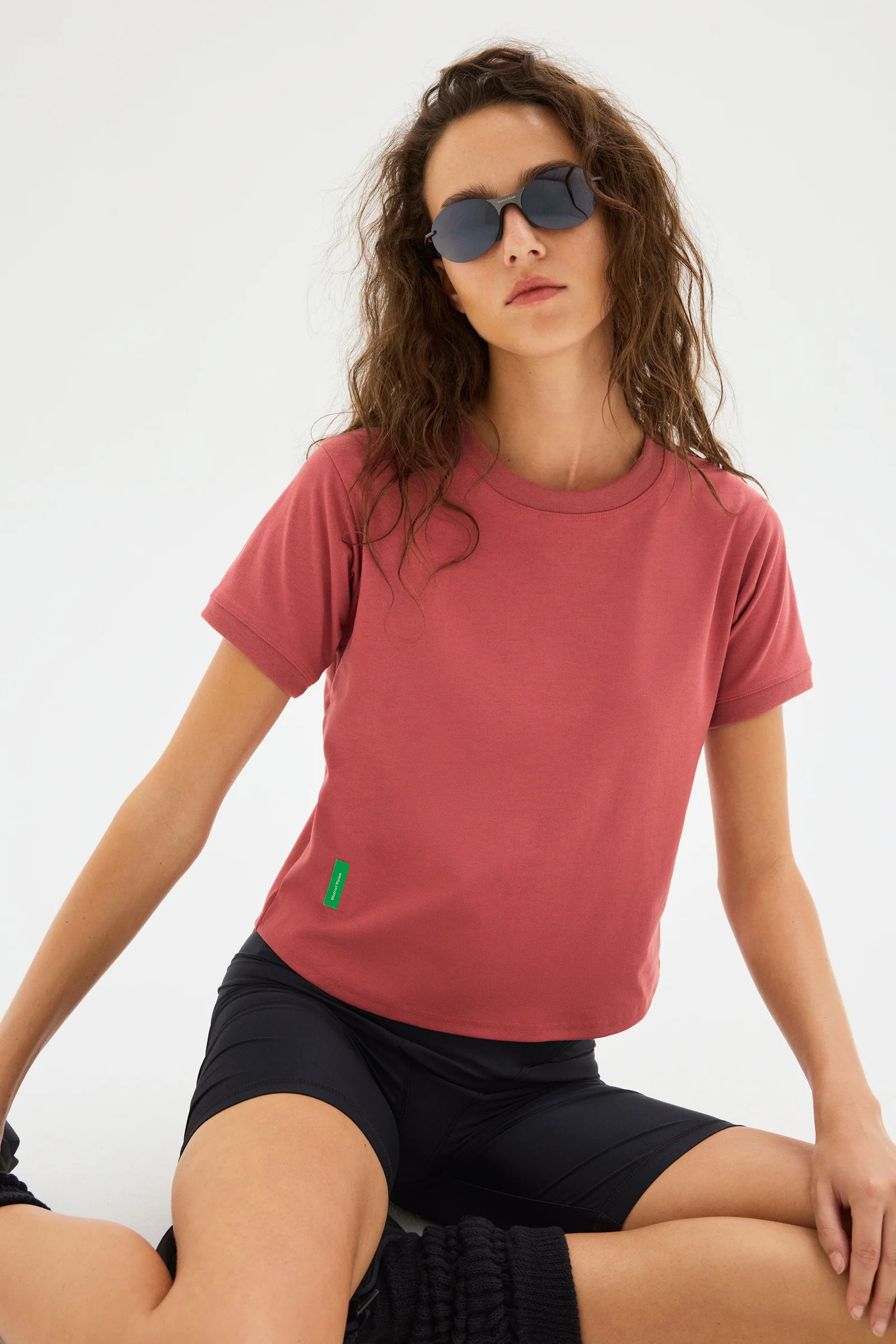 District Vision | Fitted Cropped T-Shirt - Vintage Red