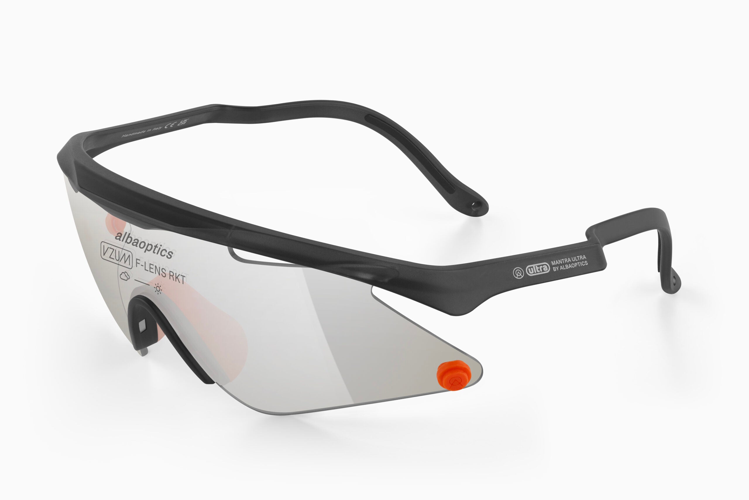 คอลเลกชั่น ULTRA ประกอบด้วยกรอบแว่น MANTRA สองเวอร์ชัน: BLK และ WHT พร้อมด้วย VZUM™ F-LENS RKT ULTRA