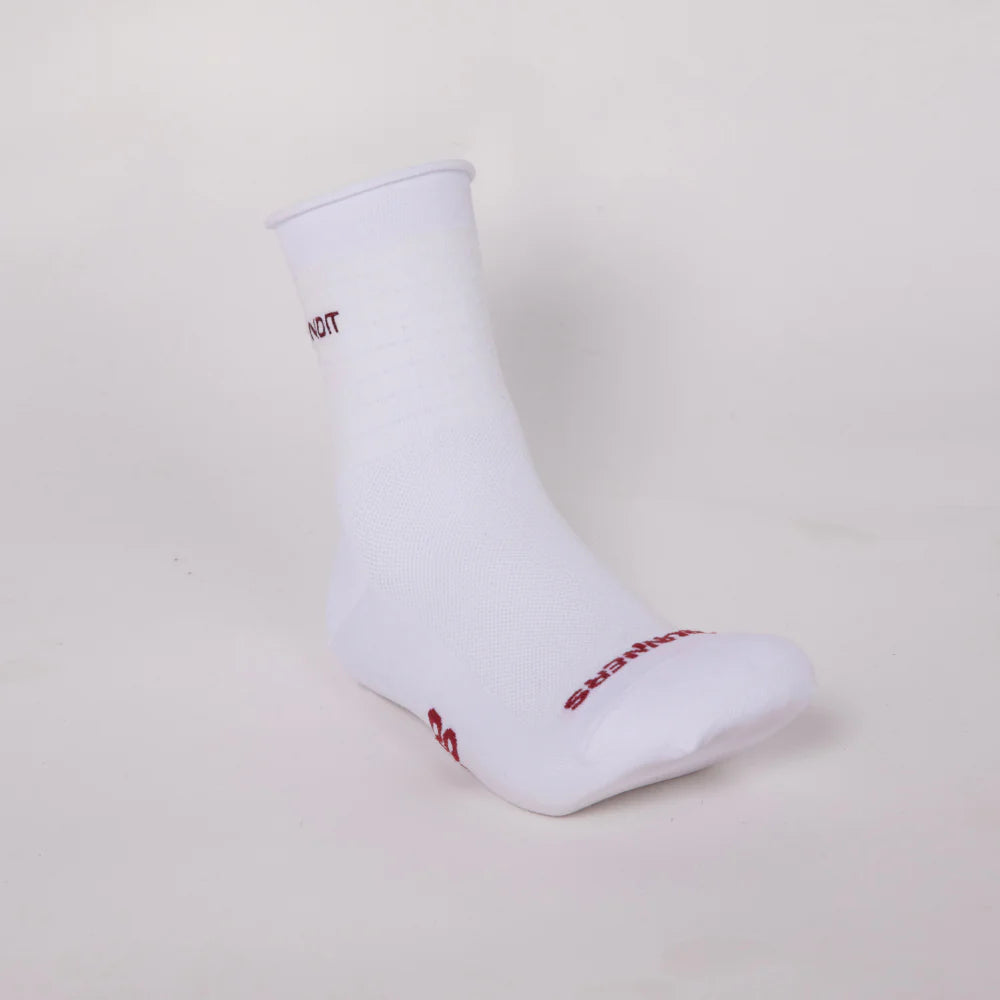 ถุงเท้า Cushion Run Quarter ที่มี CoolMax ™ ให้ความสมดุลที่เหมาะสมที่สุดในการรองรับ การบีบตัว และการระบายอากาศ ความยาวหนึ่งส่วนสี่เป็นสีดำ สวมพร้อมโลโก้ตัวอักษร Bandit สีขาวอันเป็นเอกลักษณ์ที่ด้านหน้าตรงกลางด้านบน ถุงเท้าเหล่านี้มีอายุการใช้งานหลายพันไมล์และมาพร้อมกับคุณภาพด้านประสิทธิภาพทุกประการ จำเป็นสำหรับประสบการณ์การวิ่งที่ราบรื่น: