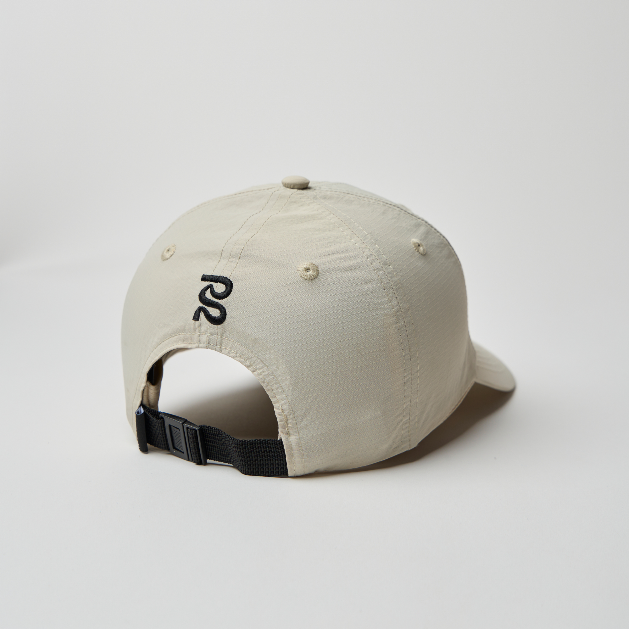 หมวกทรงคลาสสิกที่ผลิตจากไนลอนรีไซเคิล 100% มีคุณสมบัติกันน้ำและเคลือบสารป้องกันรอยยับ สายรัดด้านหลังปรับได้และปิดด้วยคลิปหนีบ