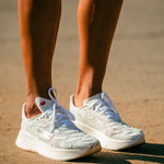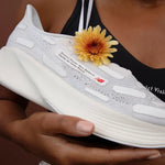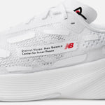 รองเท้า District Vision + New Balance FuelCell RC Elite v2 ออกแบบมาเพื่อประสิทธิภาพสูงสุดในการวิ่งบนถนน โฟม FuelCell จับคู่กับแผ่นคาร์บอนไฟเบอร์เต็มความยาวช่วยเพิ่มการคืนพลังงานและแรงขับเคลื่อน ส่วนเว้ากลางเท้าและพื้นรองเท้ายางน้ำหนักเบาที่วางในตำแหน่งที่เหมาะสมช่วยลดน้ำหนักโดยรวมของรองเท้าในขณะที่ยังคงความทนทานและการยึดเกาะที่จำเป็น รองเท้ามีความสูงประมาณ 8 มม. ส่วนบนแบบถักที่เบาและระบายอากาศได้ดีซึ่งทับด้วยงานศิลปะต้นฉบับของ Filip Pagowski และเชือกผูกแบบปรับได้เพื่อให้ พอดีตามต้องการ