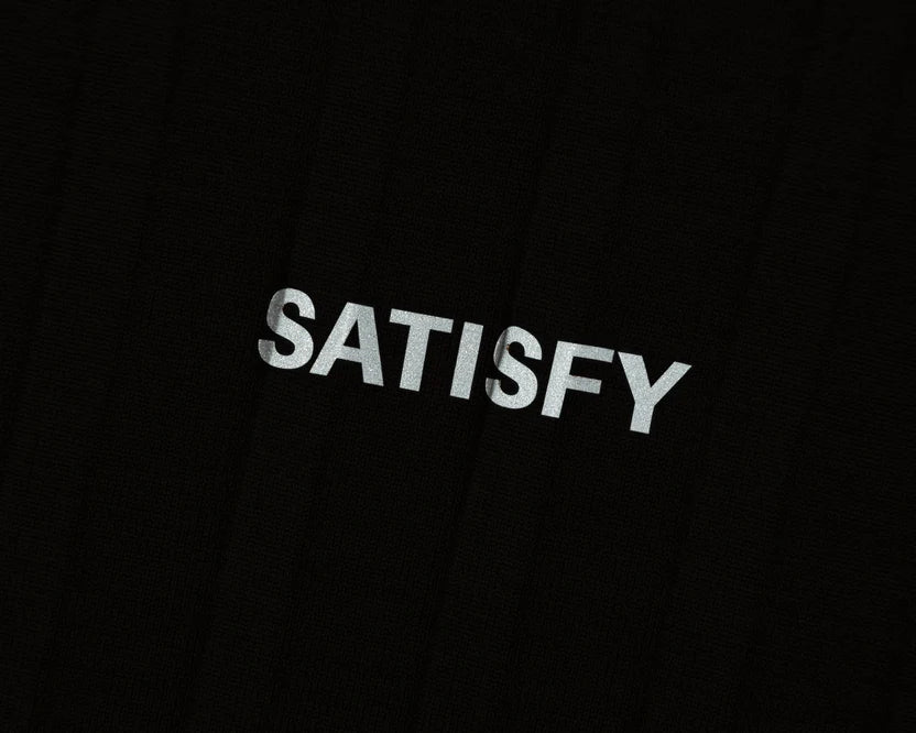 • Reflective SATISFY logo and stealth-reflective ©SATISFY print.