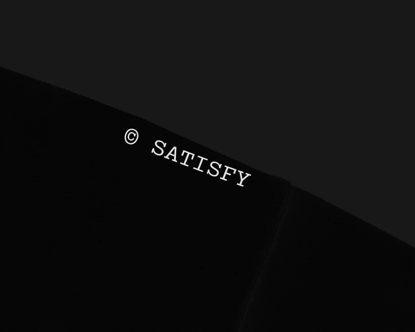 Reflective SATISFY logo and stealth-reflective ©SATISFY print.