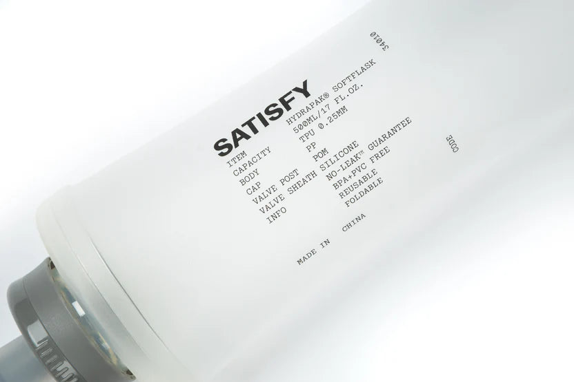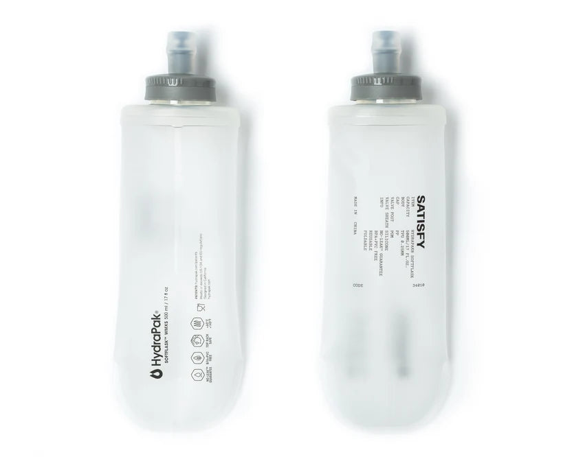 • SATISFY® 500ml soft flasks designed in collaboration with HydraPak® to keep you hydrated on runs.