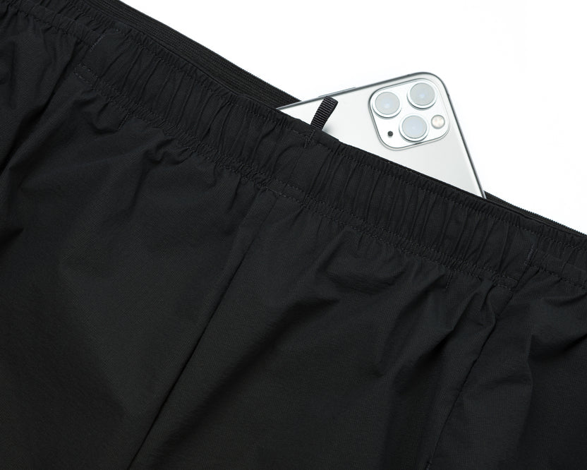 - A sweatproof phone pocket, hidden in the waistband. For keeping essentials close, and distractions at a distance.